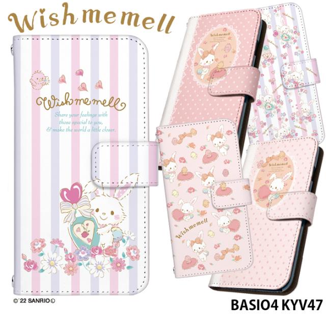 ウィッシュミーメル グッズ サンリオ BASIO4 KYV47 ケース 手帳型 ベイシオ4 カバー デザイン ケース ストラップホルダー メル me mell サンディ チューズディ