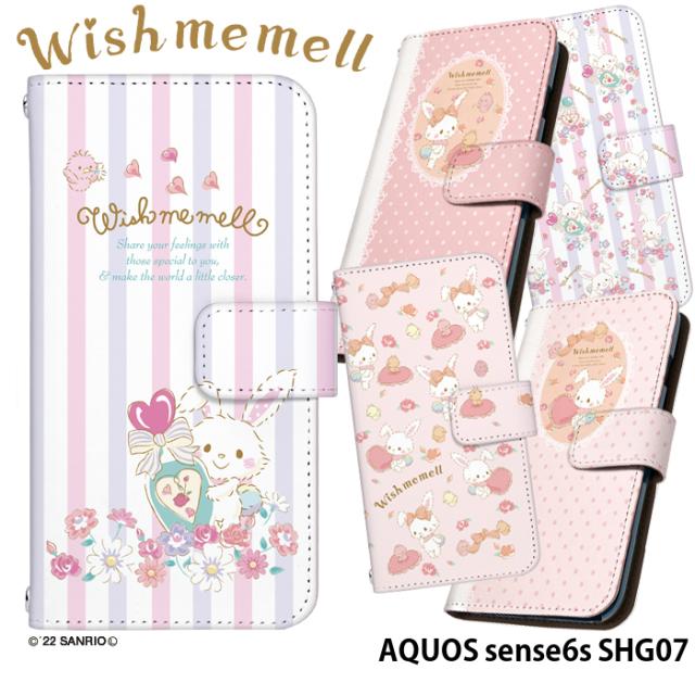 ウィッシュミーメル グッズ サンリオ AQUOS sense6s SHG07 ケース 手帳型 アクオスセンス6s カバー デザイン ケース ストラップホルダー メル me mell サンディ チューズディ