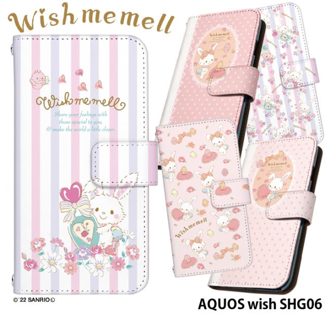 ウィッシュミーメル グッズ サンリオ AQUOS wish SHG06 ケース 手帳型 アクオス ウィッシュ カバー デザイン ケース ストラップホルダー メル me mell サンディ チューズディ