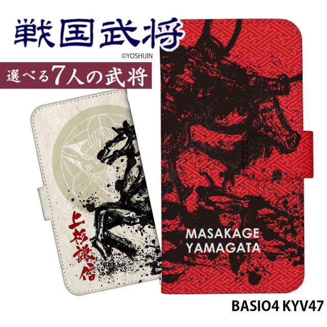 BASIO4 KYV47 ケース 手帳型 ベイシオ4 カバー デザイン 和柄 戦国武将 yoshijin 家紋