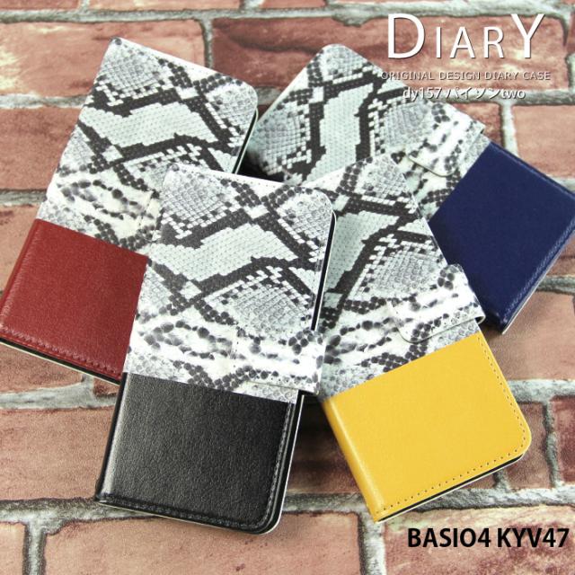 BASIO4 KYV47 ケース 手帳型 ベイシオ4 カバー デザイン パイソン柄パイソンtwo