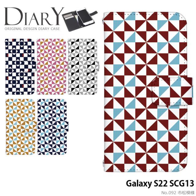 Galaxy S22 SCG13 ケース 手帳型 ギャラクシーs22 カバー デザイン 市松模様 和 モダン レトロ
