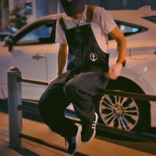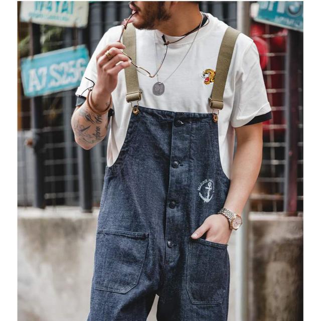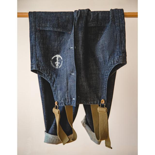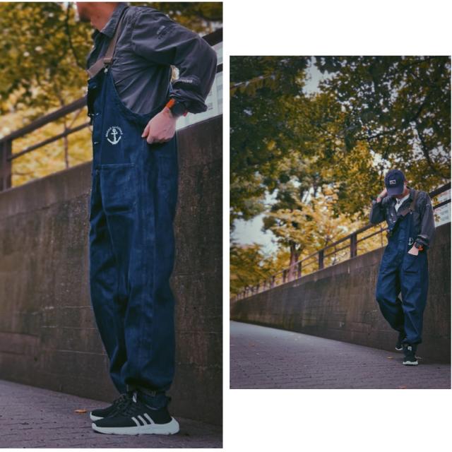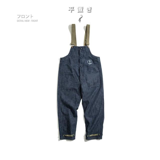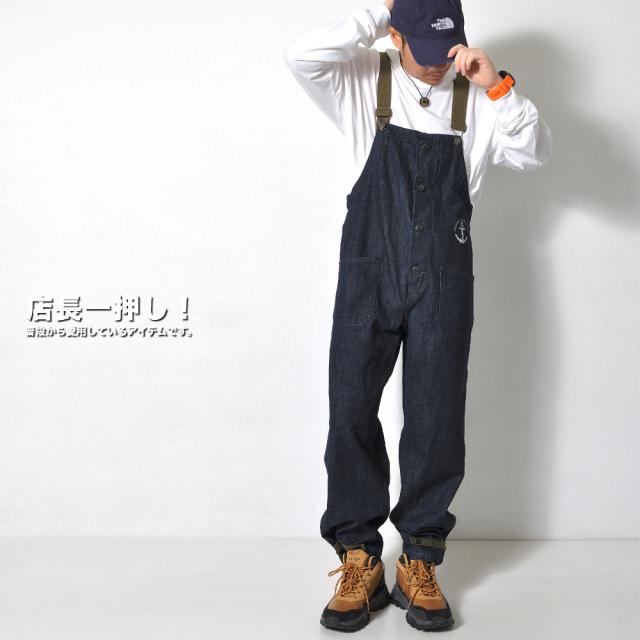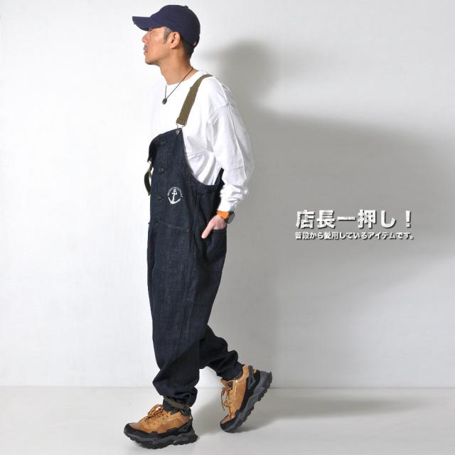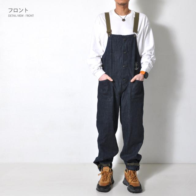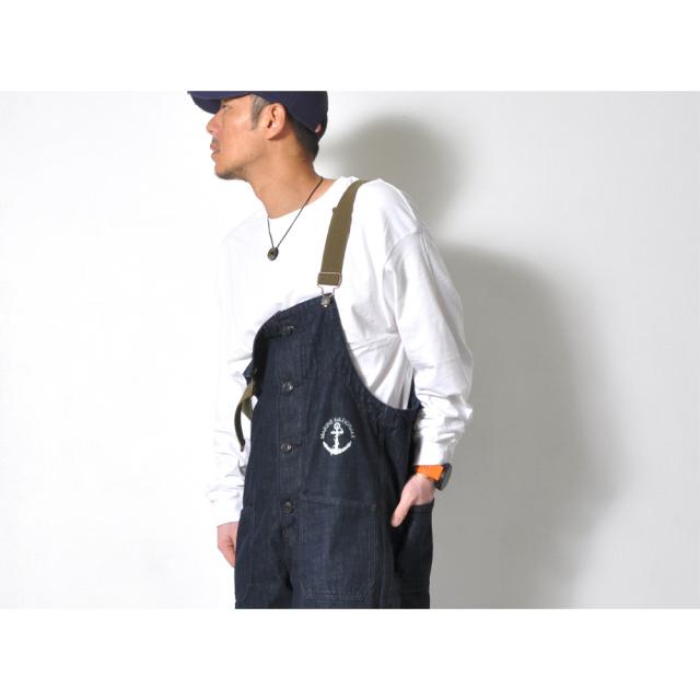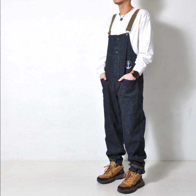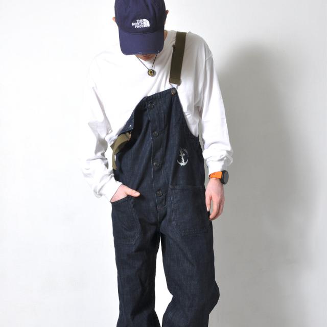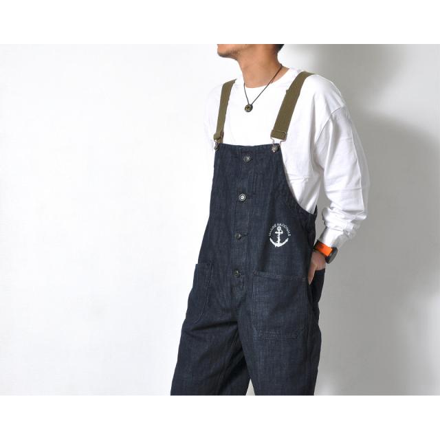 ベーシックでゆったりとしたシルエットのデニムサロペット!アメリカ海軍をイメージした胸元の錨マークがワンポイント。