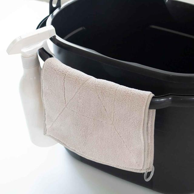 取っ手部分は丸みを帯びた形で、雑巾やスプレーを掛けておくことができます。雑巾を乾かす時や、掃除用具の収納場所にも困りません。また、この形状が重たい物を持つ時も手が痛くなるのを和らげてくれます。