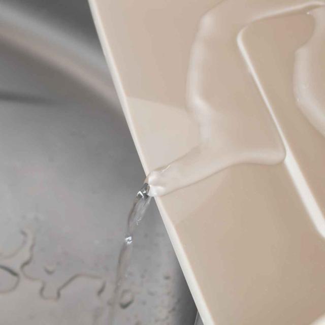 注ぎ口が左右に2カ所付いているので水が捨てやすく、どちらからでも方向を変えることなく水を注げます。