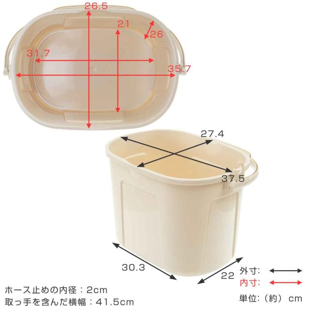 19Lの大容量で取っ手付きの使い勝手がいいバケツです。掃除用具のバケツとしてだけでなく、楕円形の深型の特徴を活かして、シーンに合わせた多様な使い方できます。