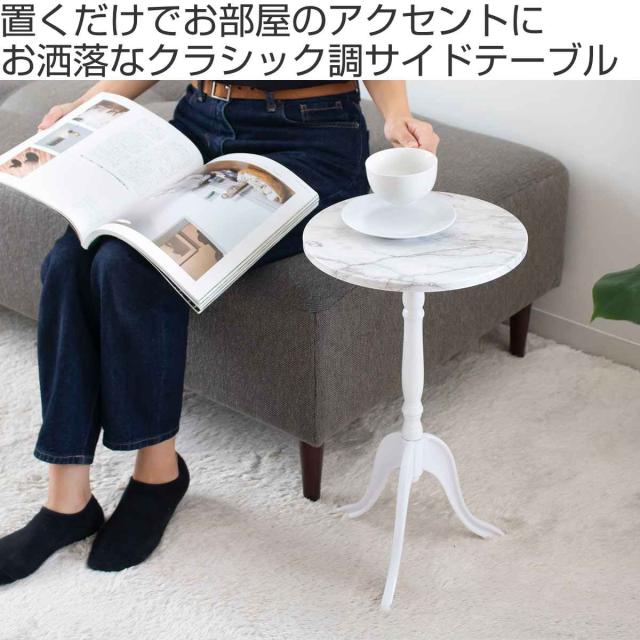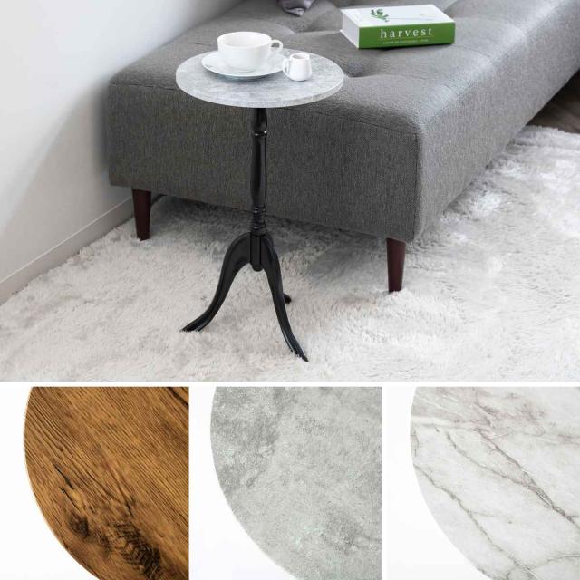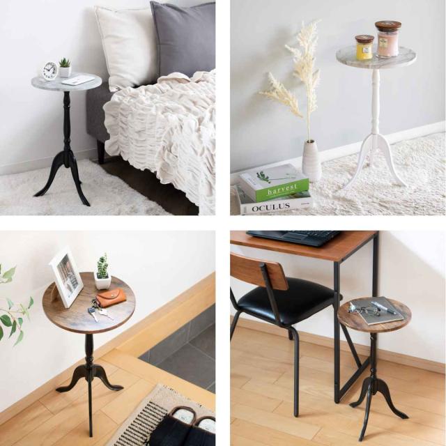 サイドテーブル 高さ52.5cm コーディサイドテーブル 大理石風 木目調 ( 丸 テーブル ミニテーブル コーヒーテーブル ナイトテーブル コンパクト 軽量 リビング 玄関 寝室 おしゃれ クラッシック調 姫系 マーブル 白 ホワイト 黒 )
