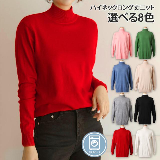 新作 選べる8色★ハイネックロング丈ニット レディース トップス 長袖 秋 冬 ゆったり 春 体型カバー セーター 無地 シンプル カジュアル きれいめ 通勤 通学 オフィス 普段着 お出かけ デイリー 着回し