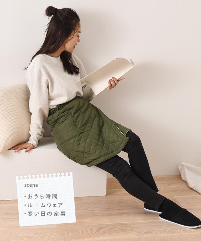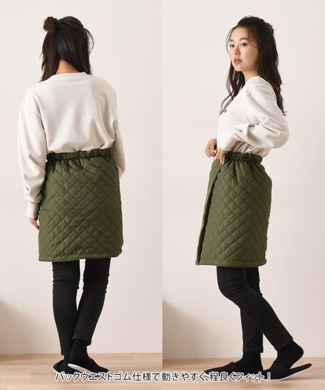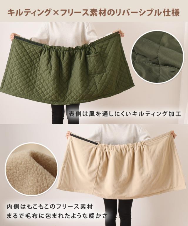 新作 3way裏フリースキルティングリバーシブルラップスカート(ショート) 巻きスカート 防寒 防風 ブランケット 中綿 レディース エプロン 腹巻 ひざ掛け ポンチョ あったか 保温 防寒着 バイク 自転車 通勤