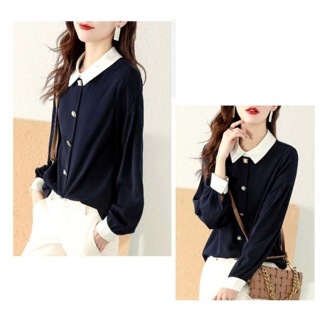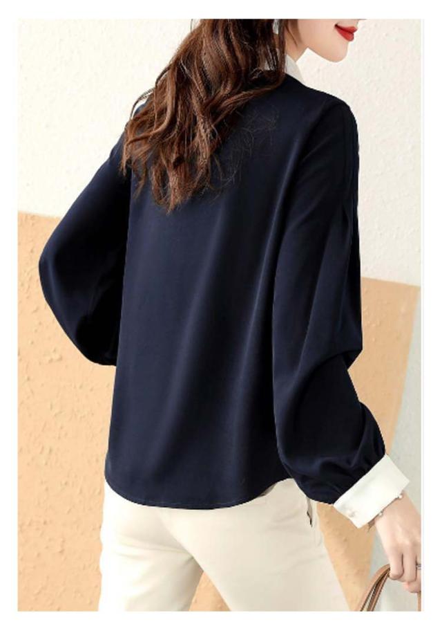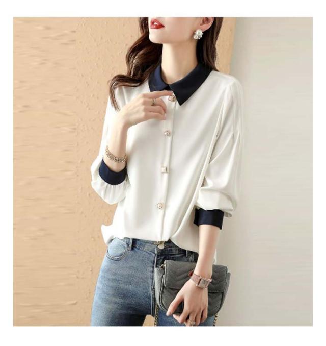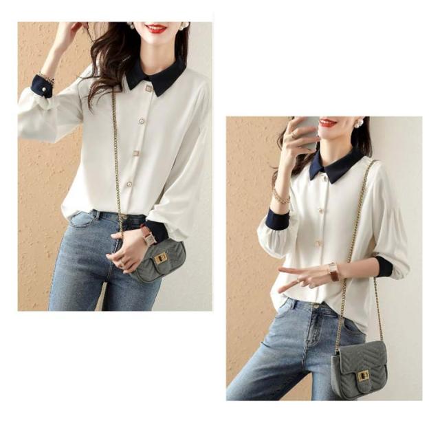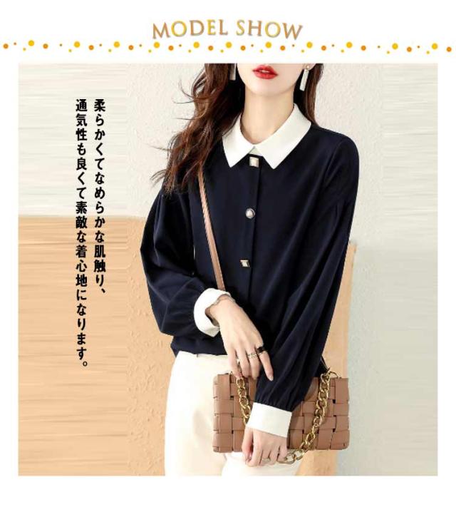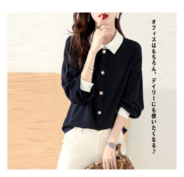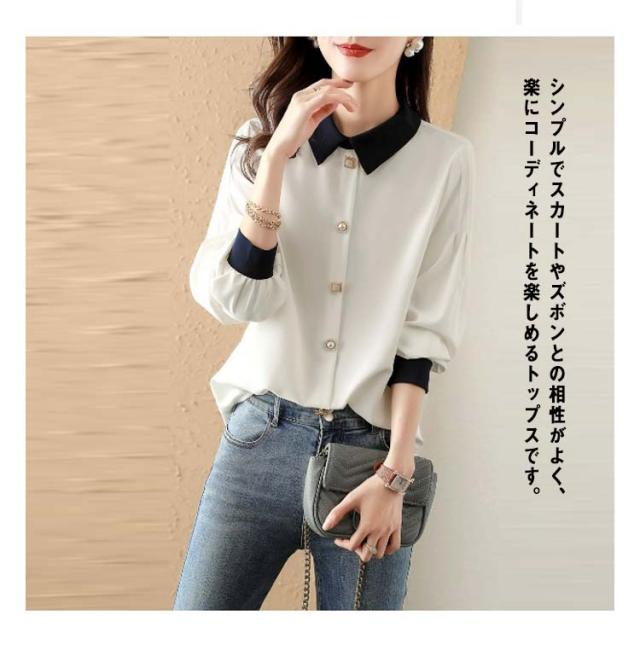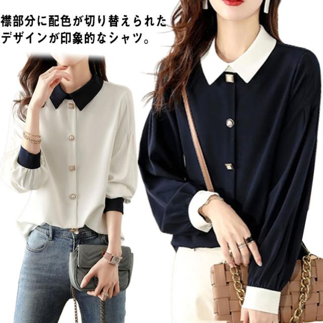 ブラウス レディース 長袖ブラウス 秋服 オフィス ブラウス 白 配色 オシャレ シャツ ブラウス 折り襟 トップス 韓国風 大人 通勤 OL フォーマル 入学式 卒業式 入園式 卒園式 ゆったり 大きいサイズ 40代 30代 50代 春 秋 冬 送料無料