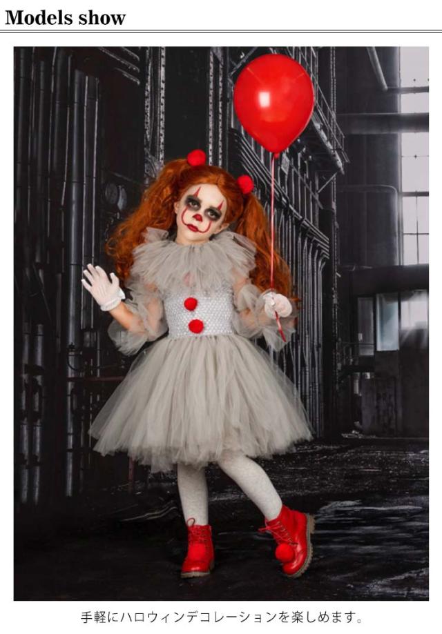 ハロウィン 魔女 コスプレ ハロウィン コスプレ 子供 女の子 ハロウィン 衣装 仮装 5点セット チュールワンピース 可愛い ピエロ ワンピース 魔女 衣装 魔法使い 魔術師 コスチューム Halloween 悪魔