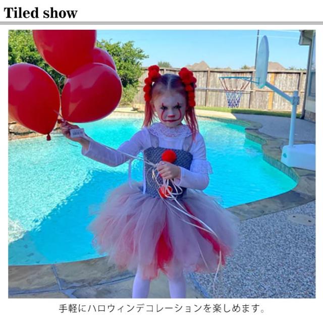 ハロウィン 魔女 コスプレ ハロウィン コスプレ 子供 女の子 ハロウィン 衣装 仮装 4点セット チュールワンピース 可愛い ピエロ ワンピース 魔女 衣装 魔法使い 魔術師 コスチューム Halloween 悪魔
