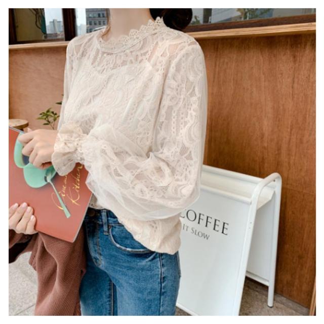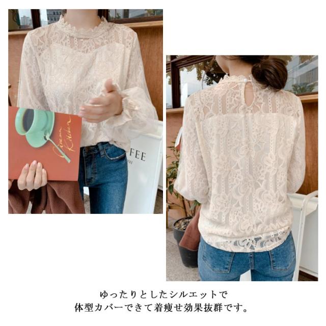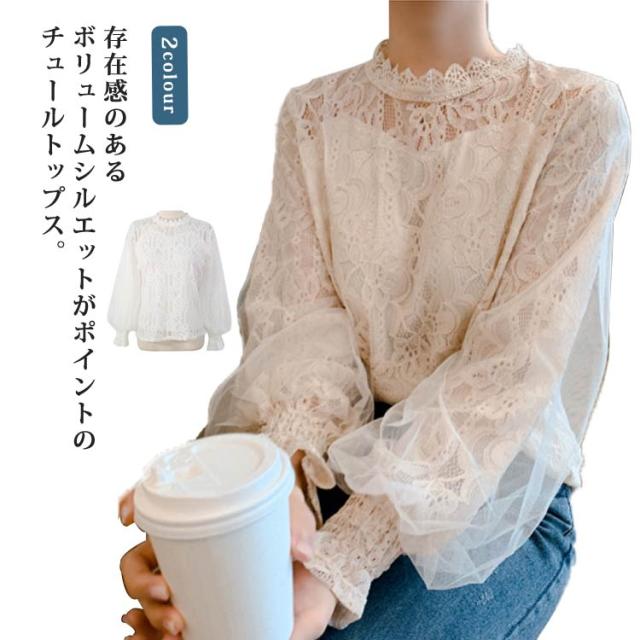 レース シャツ ブラウス シースルー レディース チュール トップス お洒落 大人 可愛い 着痩せ バルーンスリーブ 長袖 フォーマル オフィス 通勤 OL 通学 きれいめ カジュアル 春秋 ゆったり 送料無料