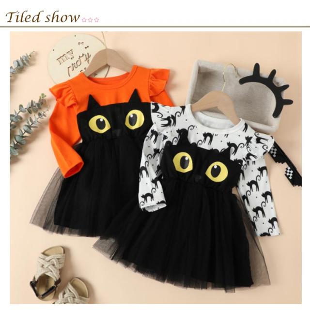 ハロウィン コスプレ 女の子 ワンピース チュールワンピース 長袖 ベビー服 子供服 キッズ ベビー 仮装 衣装 こども キッズ ベビー おばけ コスチューム コスプレ 女の子 トップス 秋冬 BABY 送料無料