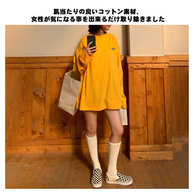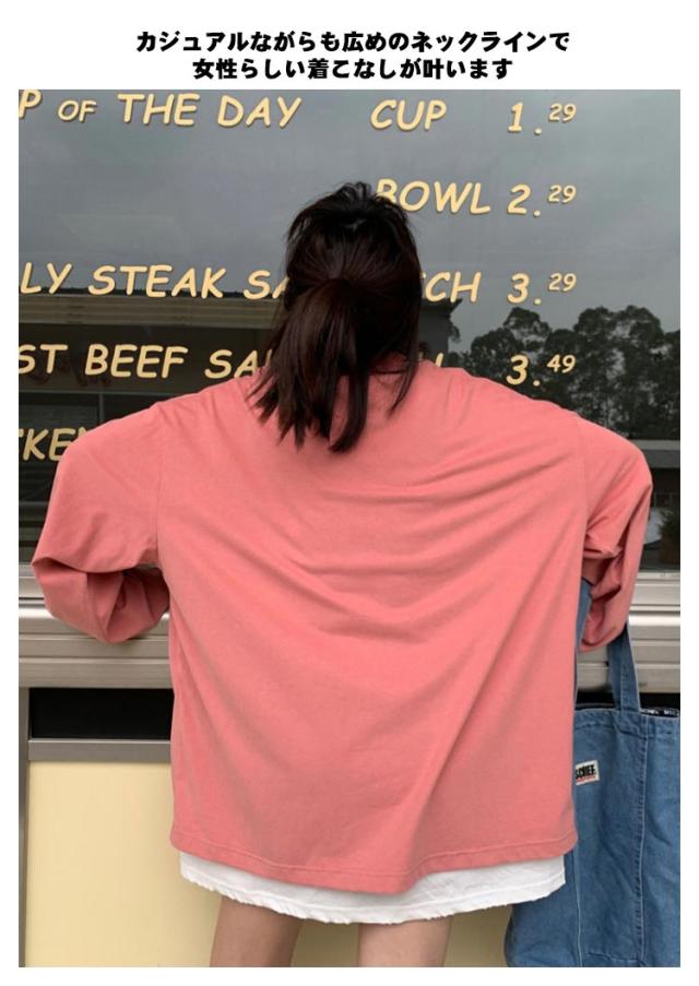 送料無料 長袖 tシャツ おしゃれ ドロップショルダー レディース ロング丈 カットソー 通気性 伸縮性 シャツ オーバーサイズ フリーサイズ かわいい トップス レイヤード風 インナー カジュアル 大きいサイズ 体型カバー 部屋着 春 夏 秋 冬