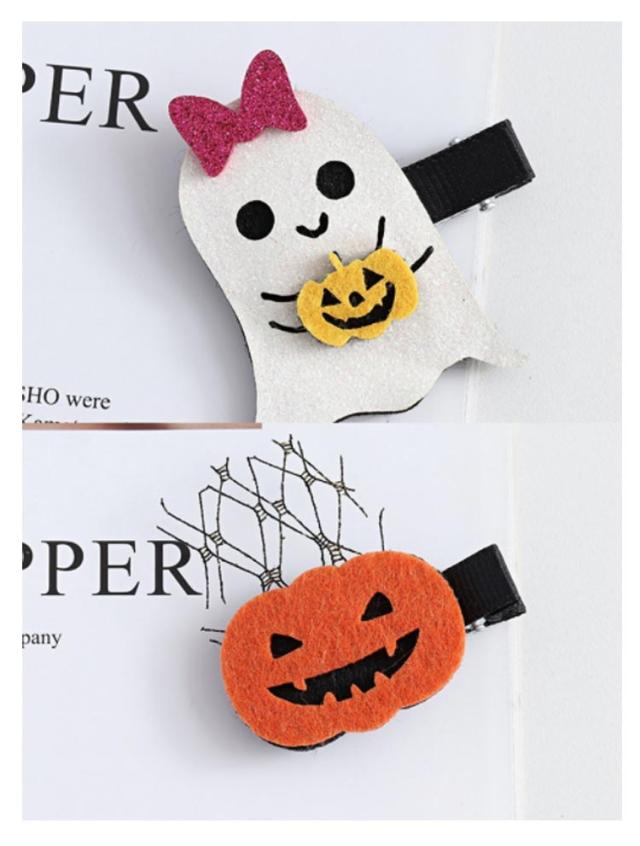 | 気軽に楽しめる♪ ハロウィン ヘアピンです。 パンプキンとおばけの組み合わせ♪ | |