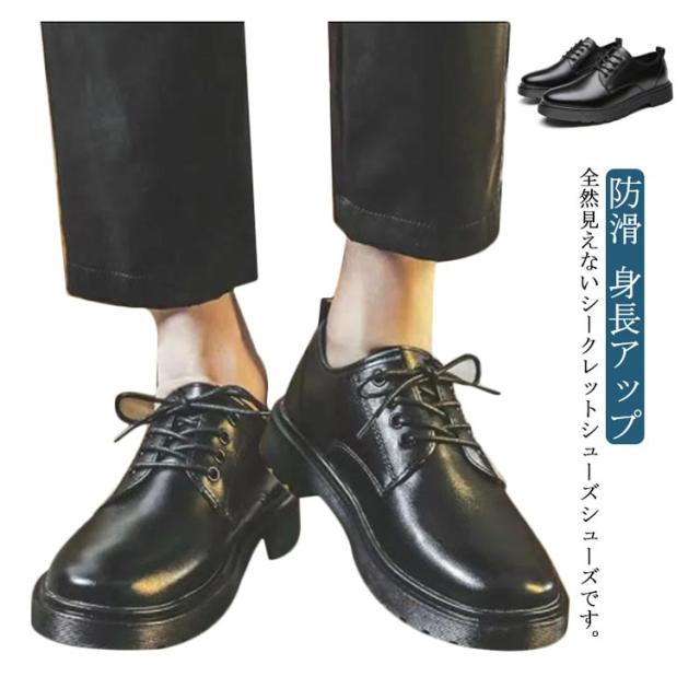 メンズ シークレットシューズ ビジネスシューズ 黒 6cmUP フォーマル カジュアル 革靴 身長アップ 背が高くなる靴 成人式 結婚式 6cmヒール 防滑 ブラック 就活 6センチヒール ヒールアップ 冠婚葬祭 紳士靴 春夏秋冬