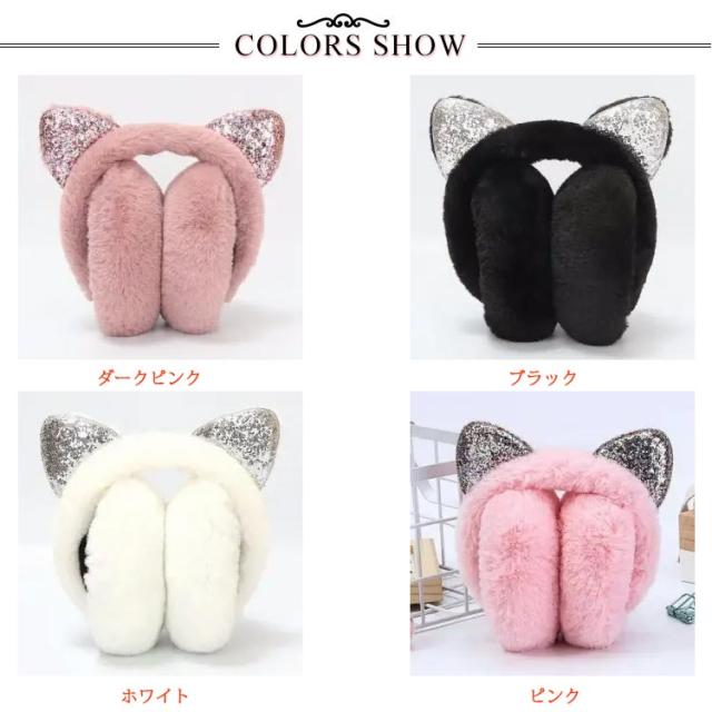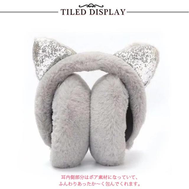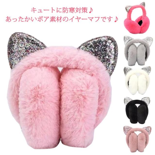 イヤーマフ 耳付き 女の子 キッズ 耳あて スパンコール 子供用イヤーマフ 寒さ対策 防寒 ボア ジュニア 小学生 幼稚園 アウトドア 通学 通園 冬 全7色