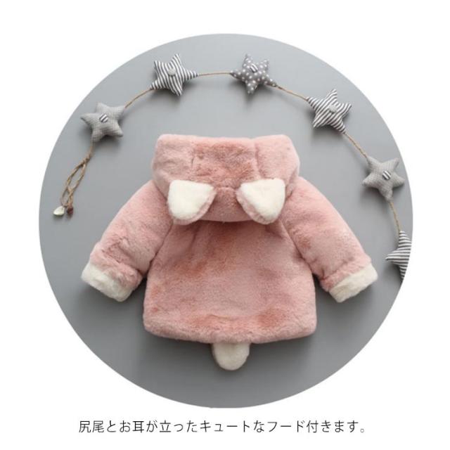 子供コート ファーコート キッズ ボアコート ウサ耳 しっぽ付き ベビーコート ふわふわ もこもこ 防寒 アウター ボア 出産祝い プレゼント 秋冬 冬服 66 73 80 90 100 110 120 130cm ベビー服 女の子 可愛い 送料無料