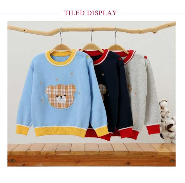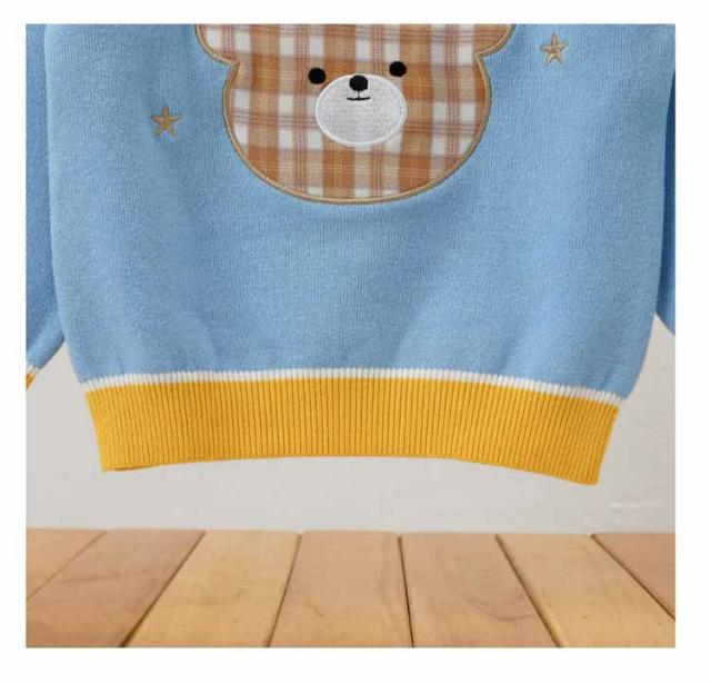 ニット セーター 長袖 男の子 クルーネック くま トップス 男児 通学 普段着 通園 学校 保育園 幼稚園 お出かけ カジュアル 全3色