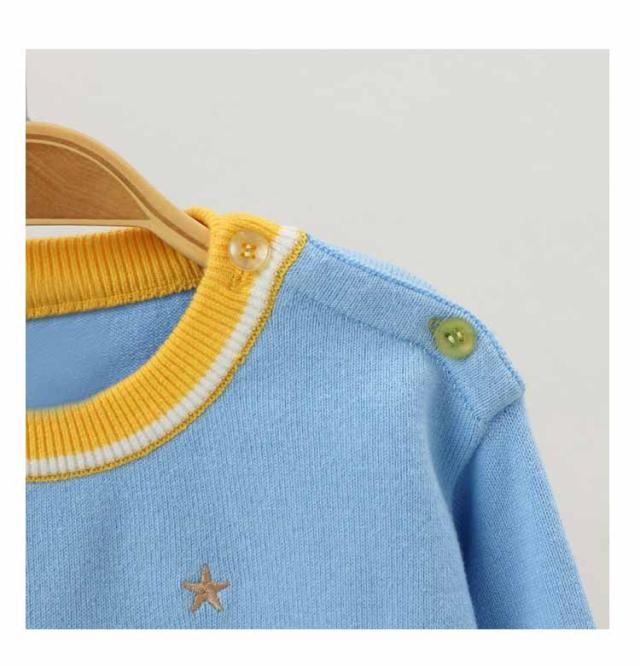 | ベアがとってもキュートな可愛いセーターが登場です。 クルーネックのシンプルなデザインで、どんなボトムとも相性抜群。 首元に釦開きが付いていて、お着替えしやすい仕様に。 春秋に一枚だけご着用でき、寒い日にインナーとして、外にジャケットをカバーしても窮屈感もなし! | |