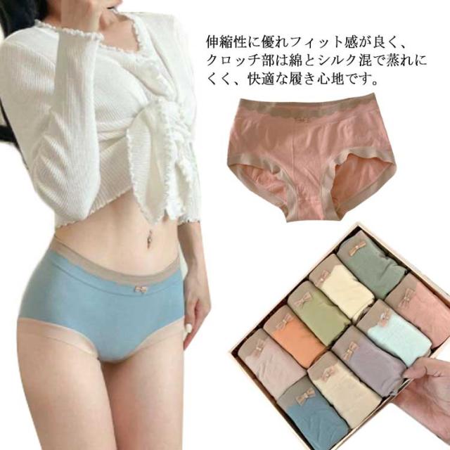ショーツ レディース 10枚セット くすみカラー 通気性 綿 コットン 下着 大人 上品 インナー 無地 無縫製 かわいい オールシーズン サラサラ 伸縮性 おしゃれ 響かない シームレス 抗菌 消臭 シンプル スタンダード 送料無料 実物は箱がありません