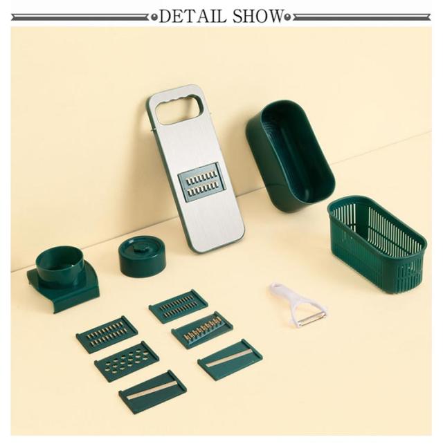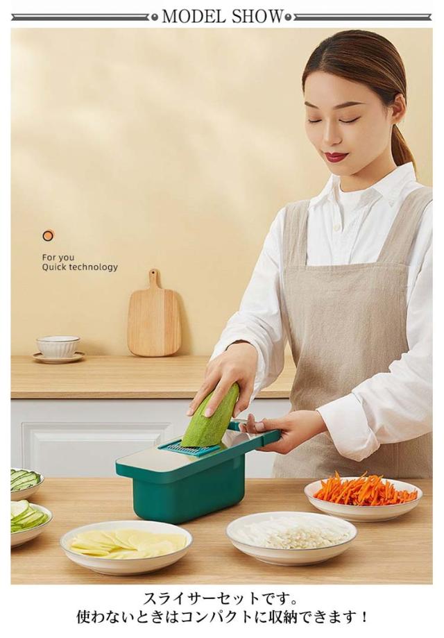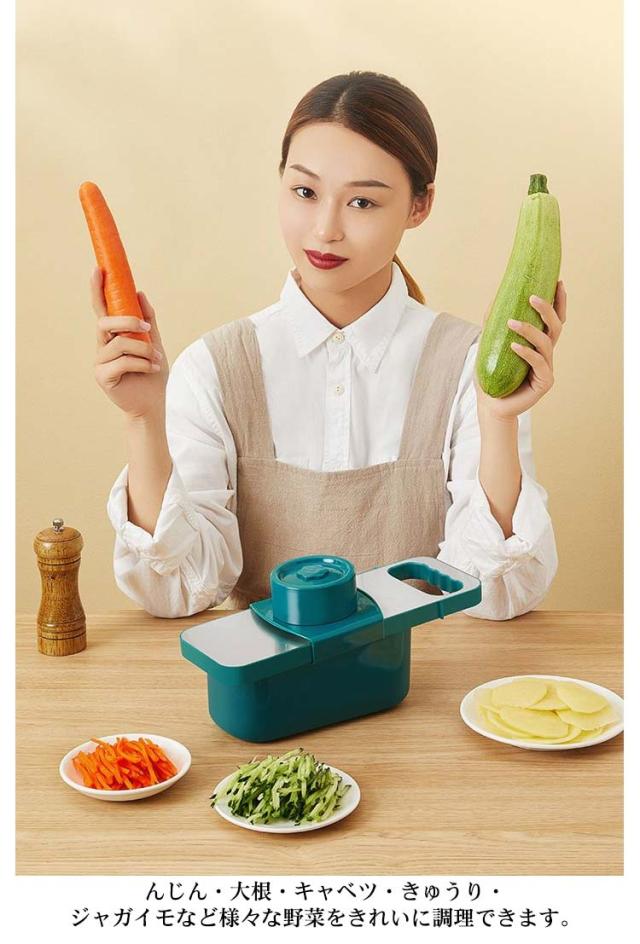 | 自宅で簡単料理して、キッチンでの生活を楽に! スライサーセットです。使わないときはコンパクトに収納できます! 使わないときはコンパクトに収納できます。 全てのパーツを丸洗いできるので衛生的です。 野菜を千切りにしたり均等にスライスしたりできる んじん・大根・キャベツ・きゅうり・ジャガイモなど様々な野菜をきれいに調理できます。 包丁に苦手な方でも手軽に!使用便利な時短キッチングッズです。 料理するには大変役にたちます!片付けも簡単、収納も便利、料理時間を大幅に減らします! | |