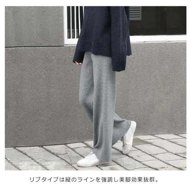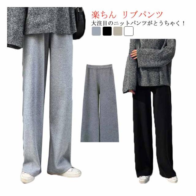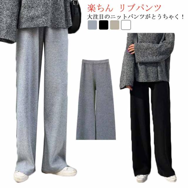 ニットパンツ リブニットパンツ ニットワイドパンツ レディース 春 秋 冬 リブパンツ ワイドパンツ ウエストゴム ストレートパンツ ロング丈 プリーツパンツ ガウチョ ニット リブ ゆるパンツ リラックス 楽ちん 通勤 入園式 卒業式 送料無料