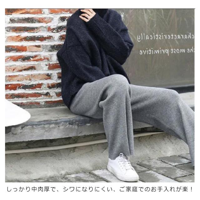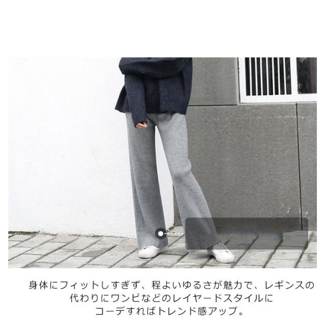 | 大注目のニットパンツがとうちゃく! 今季注目のニットパンツは、程よいワイド感とストンと落ち感のあるスタイルが◎ ほどよい肉厚感のニット素材で暖かみあり! ストンと落ちるキレイなシルエットは、気になるレッグラインを自然とカバーできるので、自信を持ってはきこなせます! リブタイプは縦のラインを強調し美脚効果抜群。 ニットなのでチクチクしない! しっかり中肉厚で、シワになりにくい、ご家庭でのお手入れが楽! 着脱が簡単な、楽な穿き心地の伸びるウエストゴム仕様。 身体にフィットしすぎず、程よいゆるさが魅力で、レギンスの代わりにワンピなどのレイヤードスタイルにコーデすればトレンド感アップ。 お手元のitemとはもちろん、同素材のニットトップスを合わせたトレンドなセットアップコーデもおススメです。 | |