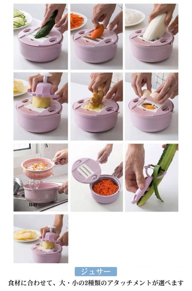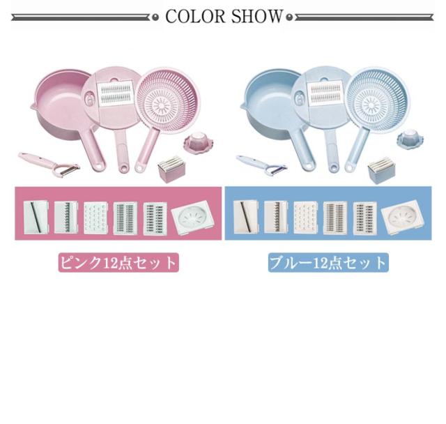 12点セット スライサーセット 1台多機能 おろし 野菜調理器セット 千切り 野菜切り器 水切りラック 野菜カッター 水切りボウル みじん切り マルチ スライス 細千切り スライサー 細切り 水切り 薄切り 果物 調理器セット キャベツスライサー 食器として 持ち手が付き