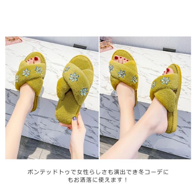 ボアスリッパ もこもこ ファースリッパ かわいい サンダル ボア レディース ファーサンダル ファー サンダル スリッポン もこもこ ルームシューズ 来客用 クリスマス プレゼント 静音 防寒 ふわふわ 送料無料