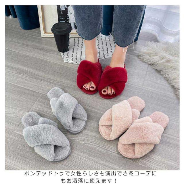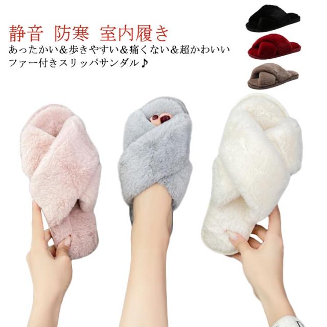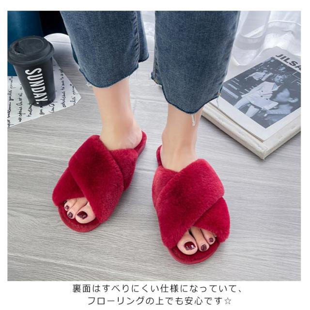 ファースリッパ かわいい ボアスリッパ もこもこ サンダル ボア レディース ファーサンダル ファー サンダル スリッポン もこもこ ルームシューズ 来客用 室内履き クリスマス プレゼント 静音 防寒 ふわふわ 送料無料