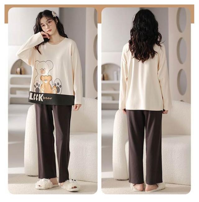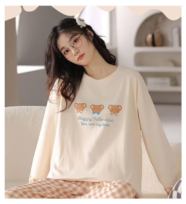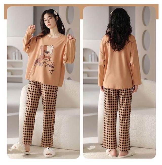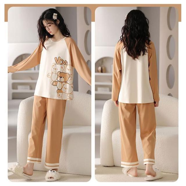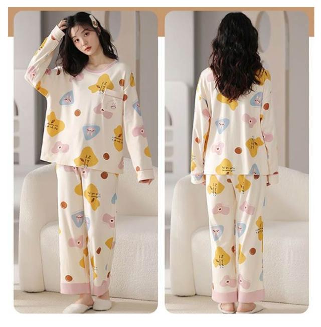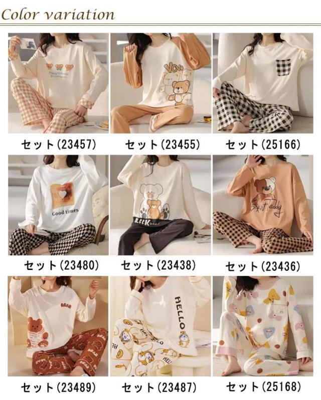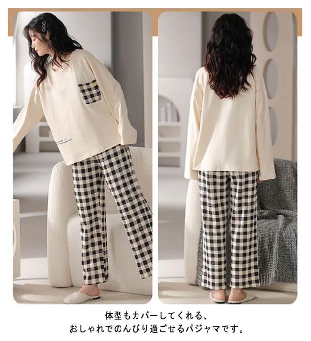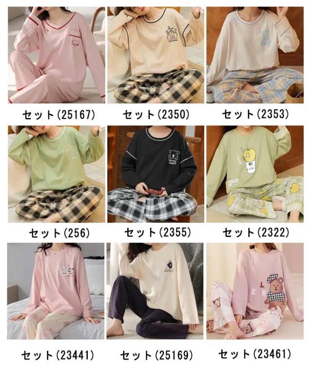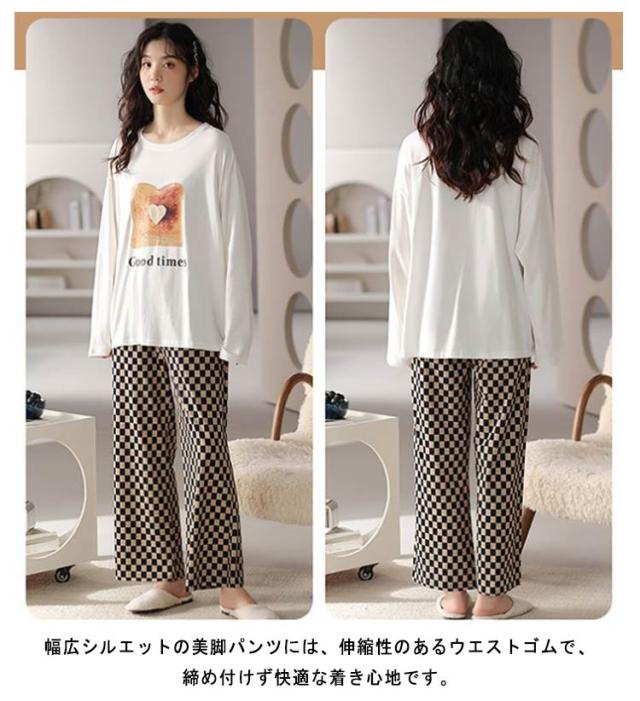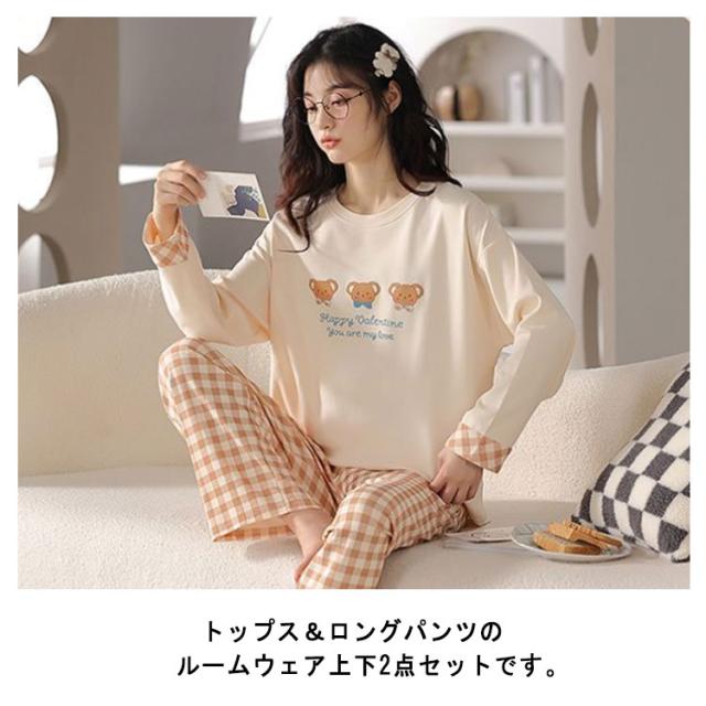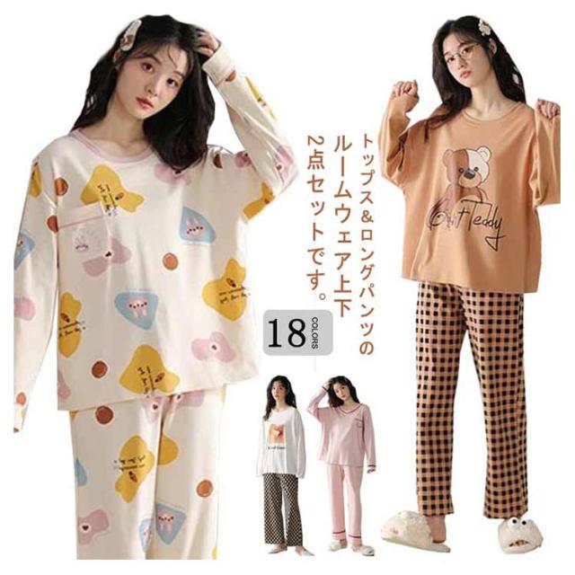 ルームウェア 長袖 レディース 上下セット パジャマ 綿 部屋着 春 秋 冬 リラックス セットアップ プルオーバー 長ズボン ロングパンツ 総柄 おうち時間 韓国 カジュアル 普段 おしゃれ 中学生 高校生 シンプル プレゼント