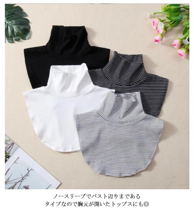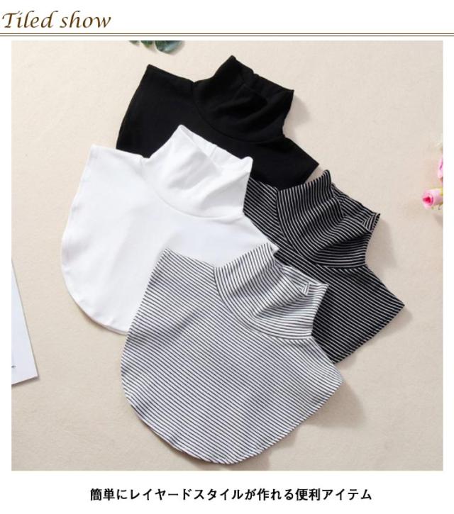 つけ襟 付け襟 レディース 2枚セット レイヤード風 送料無料 タートルネック ハイネック ボーダー柄 無地 純色 重ね着 インナー 秋冬 つけえり 女性 グッズ 首元 冷え対策