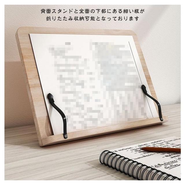 | 勉強・読書・仕事などそれぞれのシーン・用途に合わせ、8段階の角度調節が可能。 背面スタンドと全面の下部にある細い板が、折りたたみ収納可能となっております。 しっかりとキープするので両手を使う作業に便利。 勉強や読書にはもちろん、レシピ本を広げたままの料理などキッチンでの使用にもおすすめ! | |