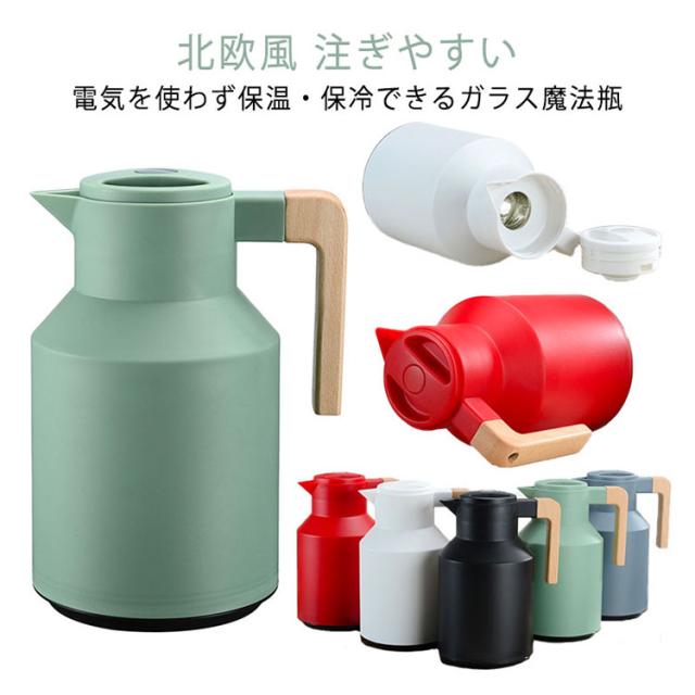 | 電気を使わず保温・保冷できるガラス魔法瓶 暑い時期は冷たい飲み物を入れたり、寒い時期はお湯を入れてコーヒーや紅茶を淹れたり一年中活躍してくれます。 持ち運びに便利な大きな木質ハンドルが付いています。 インテリアになじむシンプルなデザインがうれしいポイント。 毎日のお食事用から、部活動、ピクニックやパーティーなど屋内外の様々なシーンで大活躍してくれます。 | |