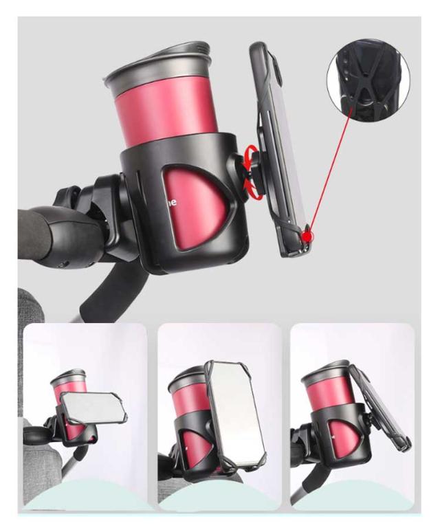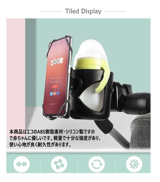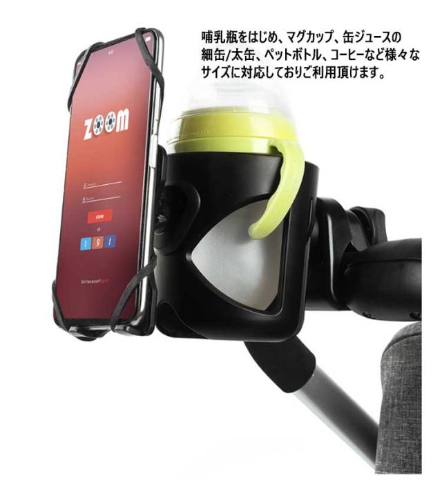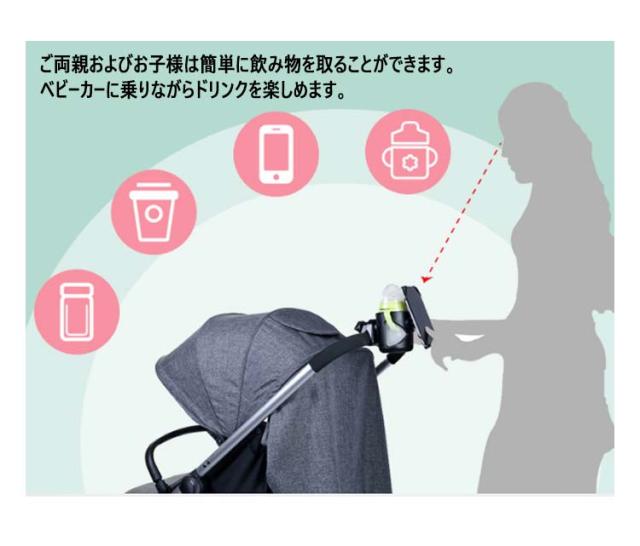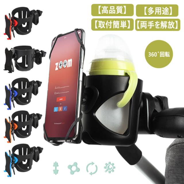 送料無料 360?回転 ベビーカー ドリンクホルダー スマホホルダー付き ボトルホルダー カップホルダー ハンドル 取り付け サドル シンプル 哺乳瓶 ベビーマグ 水筒 ボトルゲージ 紙コップ 収納 自転車 車 赤ちゃん ベビー ホルダー スマホ収納 ペットボトル