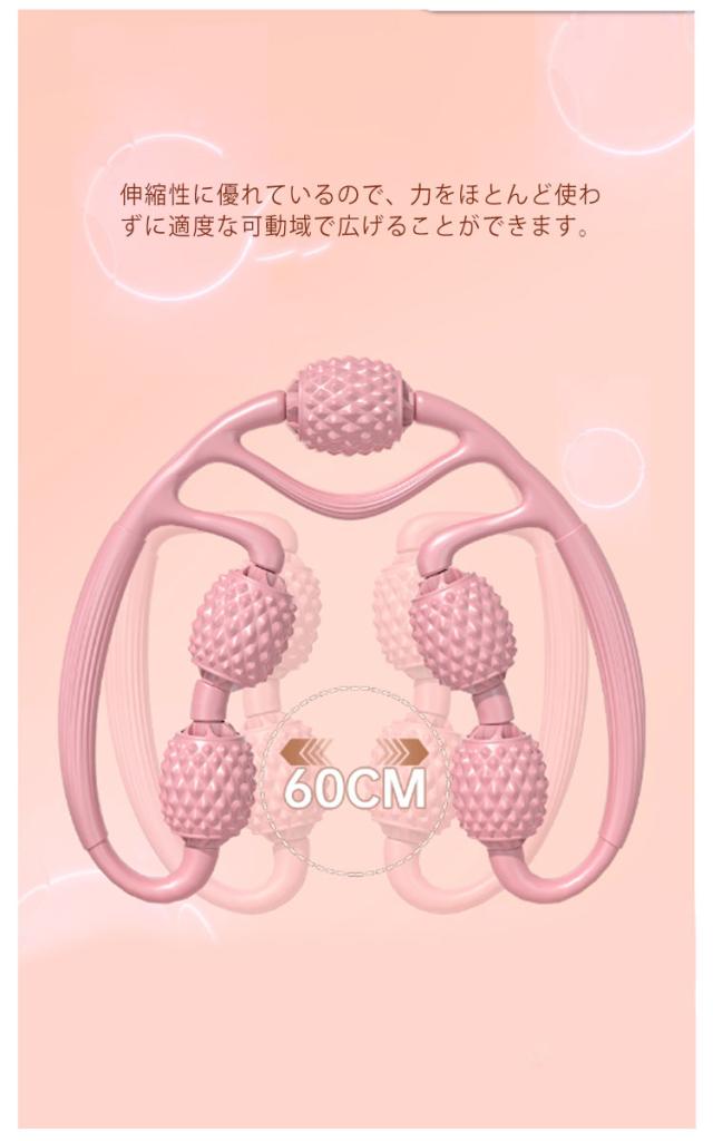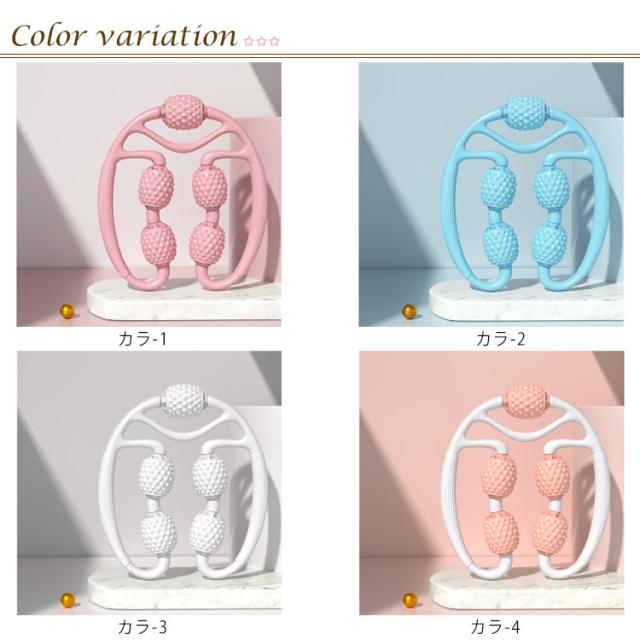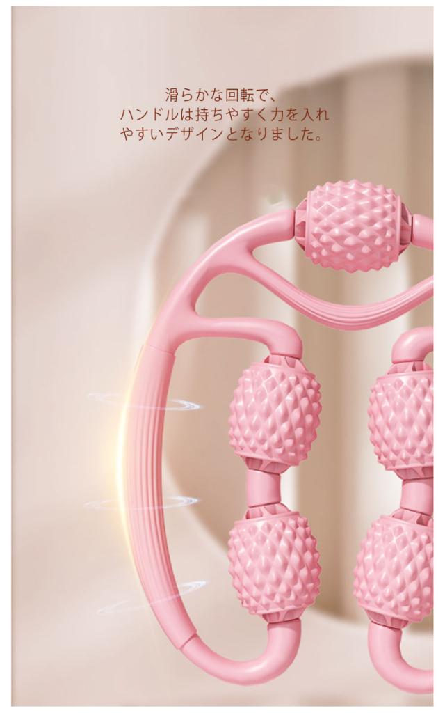 | いつでもどこでも気軽にお使いいただけるマッサージローラーです。 5つのローラーが筋肉や体の各部位を気持ち良くマッサージして、リラックスさせます。 毎日就寝30分前にマッサージする事で、筋肉を効率よくほぐすことができます。 伸縮性に優れているので、力をほとんど使わずに適度な可動域で広げることができます。 滑らかな回転で、ハンドルは持ちやすく力を入れやすいデザインとなりました。 ローラーの突起部分がほどよく刺激!運動後の筋肉疲労時にマッサージすることも効果的です。 | |