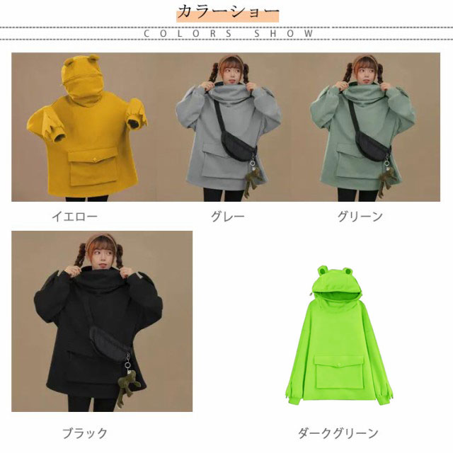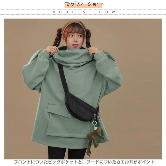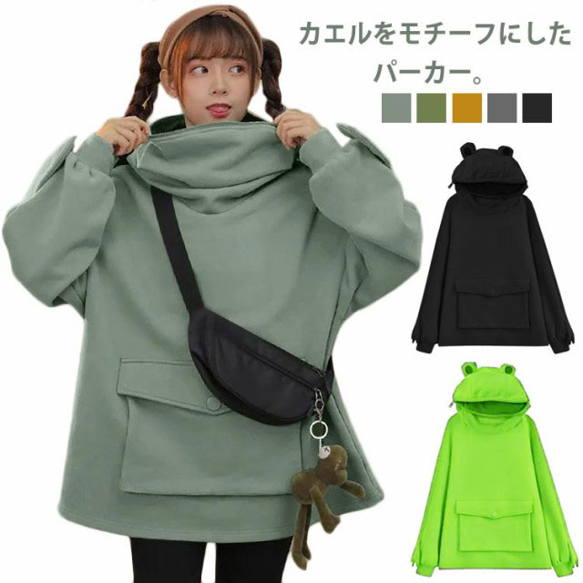 パーカー カエル 長袖 プルオーバーパーカー スウェット レディース カエル耳 フード付き アウター メンズ 男女兼用 スエット ビッグシルエット 大きめ 大きいサイズ ビッグポッケト おしゃれ カエルモチーフ かわいい カジュアル 秋服 秋 冬服 冬 春 春服 送料無料