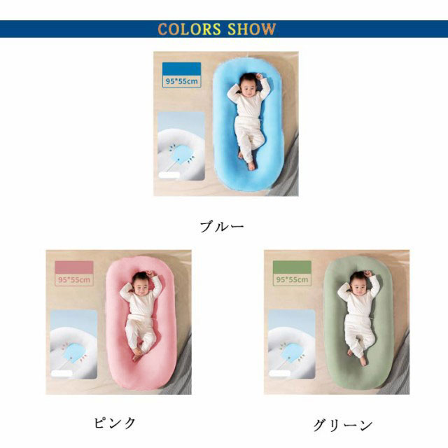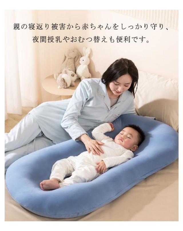 | 形状は子宮の形を模倣し、赤ちゃんにお安心した環境を与えてくれ、眠りの質を高めてくれます。 ミルクの吐き戻しなどで汚れても、カバーを外して洗濯機で洗濯やすいです。 柔らかくて衛生で、通気性も高いので、赤ちゃんの健康にいいです。 親の寝返り被害から赤ちゃんをしっかり守り、夜間授乳やおむつ替えも便利です。 ベッドの上、ソファの上、畳の上、さまざまなシーンでお使いいただけます。 里帰りや旅行、お出かけの時などの移動・持ち運びが楽々。 お祝いやプレゼントなどにも最適! | |