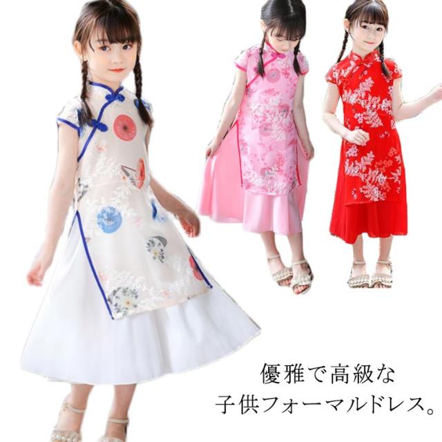 子供服 キッズドレス 女の子 花柄 チャイナ服 チャイナドレス 子供用 コスチューム ロングワンピース 刺? ハロウィン コスプレ 衣装 コスチューム 可愛い 結婚式 お揃い 半袖 仮装 子供ドレス 発表会 披露宴 コスプレ 衣装 110 120 130 140 キッズ 送料無料
