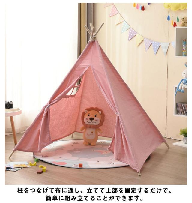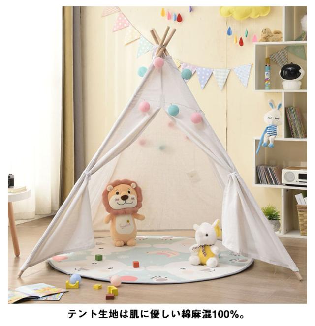 キッズテント ティピー テント テントハウス 高さ140cm ティピーテント プレイハウス 北欧 おしゃれ 無地 子供 女の子 男の子 秘密基地 室内 キッズハウス ままごと クリスマス ギフト プレゼント 七五三 誕生日 1歳 2歳 3歳
