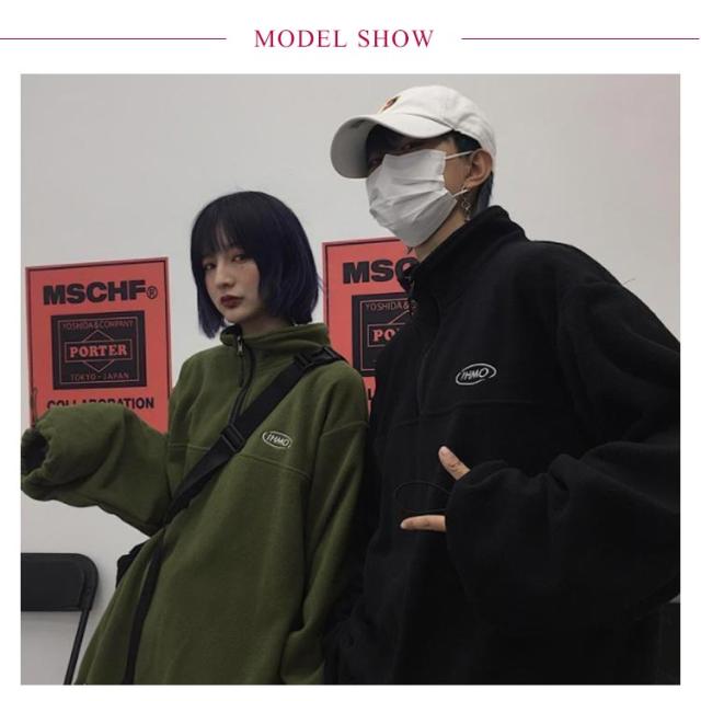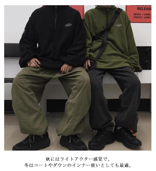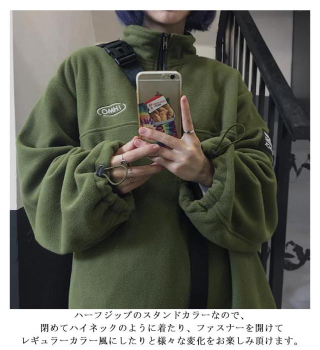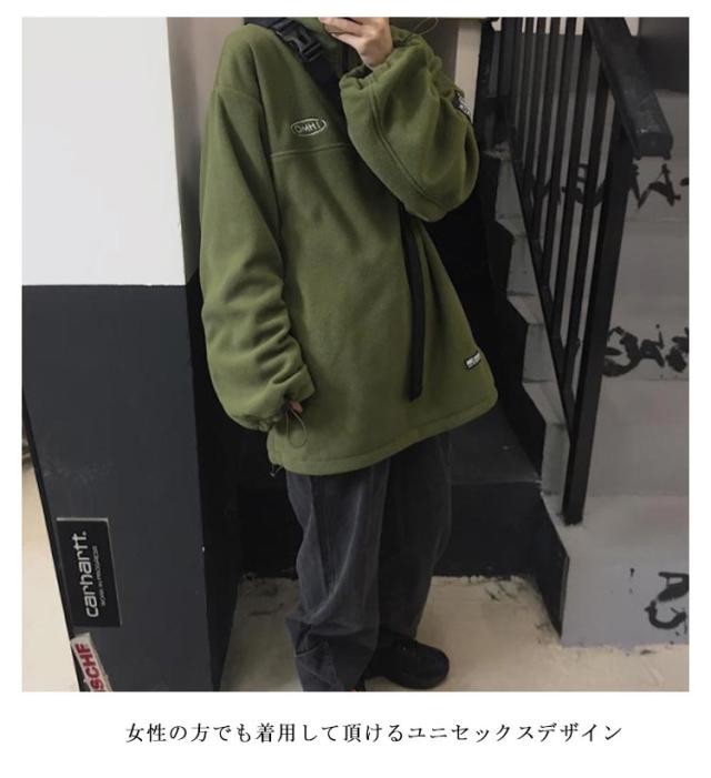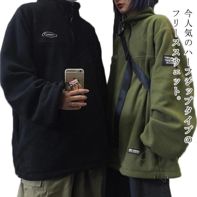 【送料無料】ボアフリース プルオーバー ハーフジップ スタンドカラー メンズ レディース スウェット パーカー ブルゾン 立ち襟 ゆったり 秋服 秋冬 厚手 オーバーサイズ 韓国風 あたっか 保温 防寒 無地 シンプル
