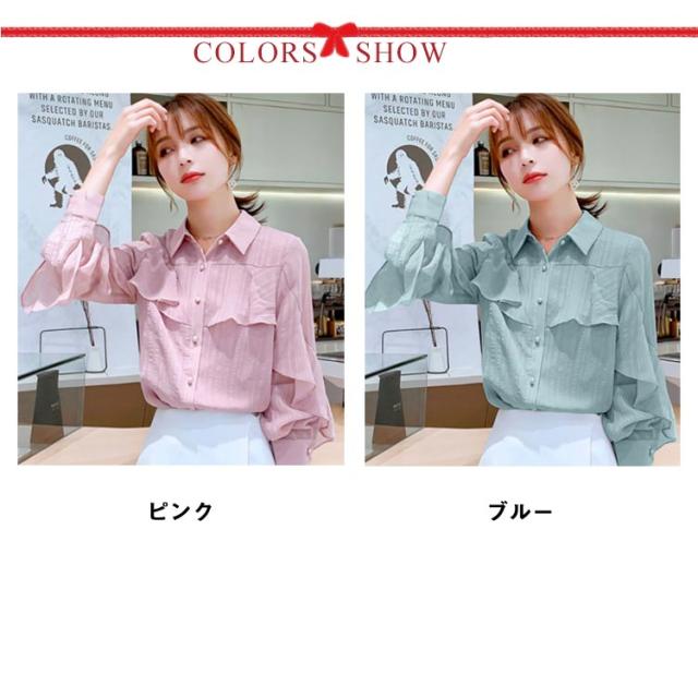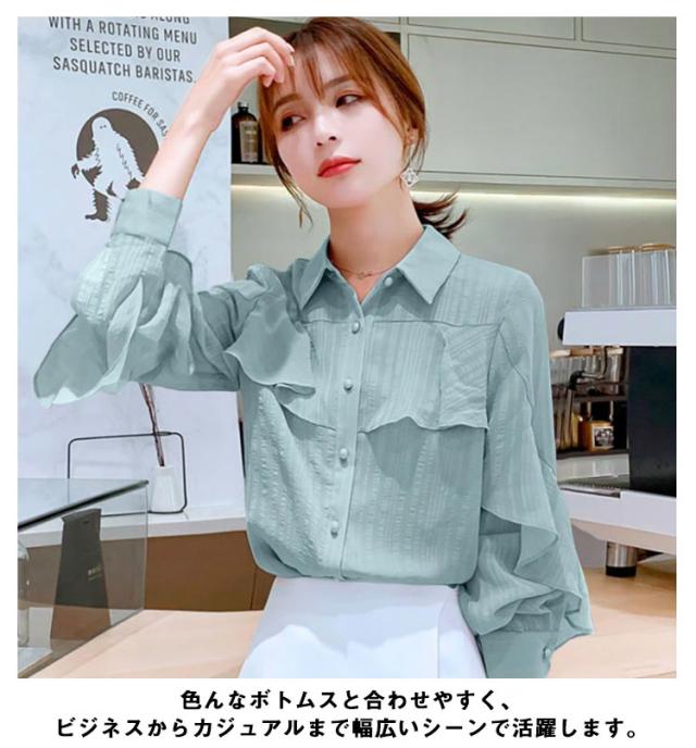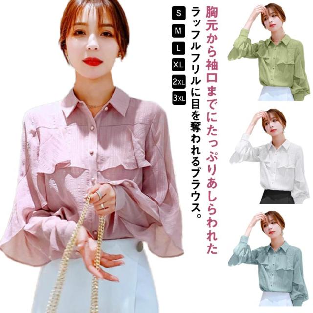 【送料無料】ブラウス シャツ 長袖 レディース トップス フリル 通勤 OL オフィス シャツ 襟付き レギュラーカラー シャツ 秋服 春 秋 冬 大人可愛い 韓国風 カジュアル 無地 シンプル きれいめ 大きいサイズ