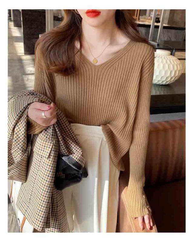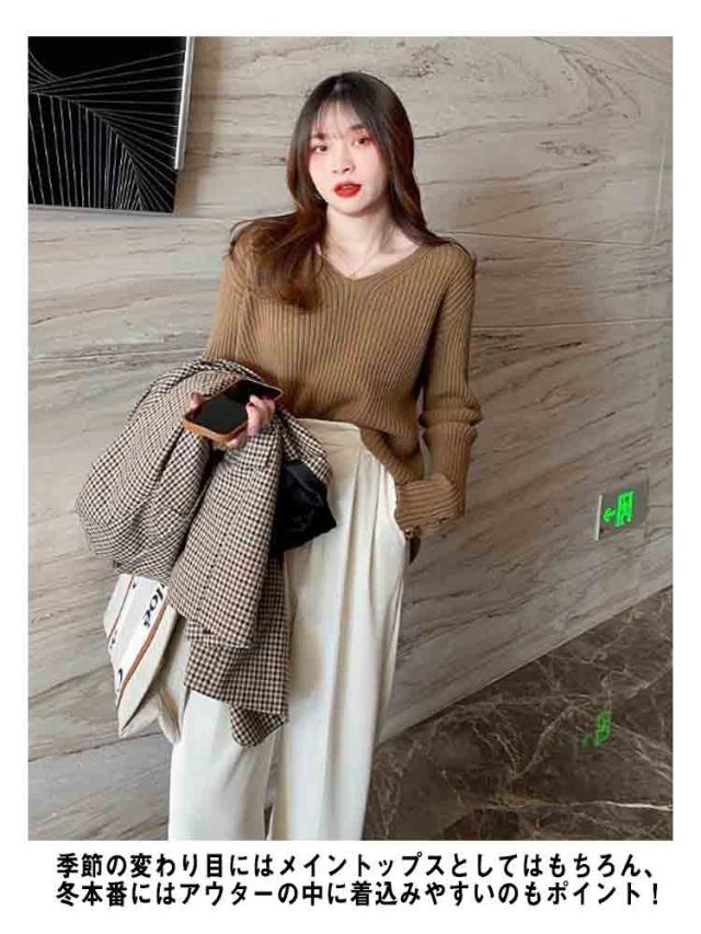 | で着回しやすいコンパクトリブニット。 縦ラインを強調するリブ編みでスタイルアップ効果も期待できます。 無駄のないすっきりしたシルエットのVネックデザインで着回し力も抜群です。 デコルテ周りをキレイに魅せてくれるラインがポイント。 季節の変わり目にはメイントップスとしてはもちろん、冬本番にはアウターの中に着込みやすいのもポイント! すっきりした肩やお袖のシルエットと丈感に設定されていますので、キレイめスタイルやオフィスシーンにも使えます。 ボトムス次第できれいめにもカジュアルにも表情を変える万能デザインで、1枚あれば大活躍間違いなし◎ | |