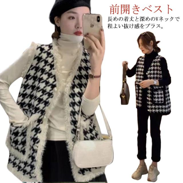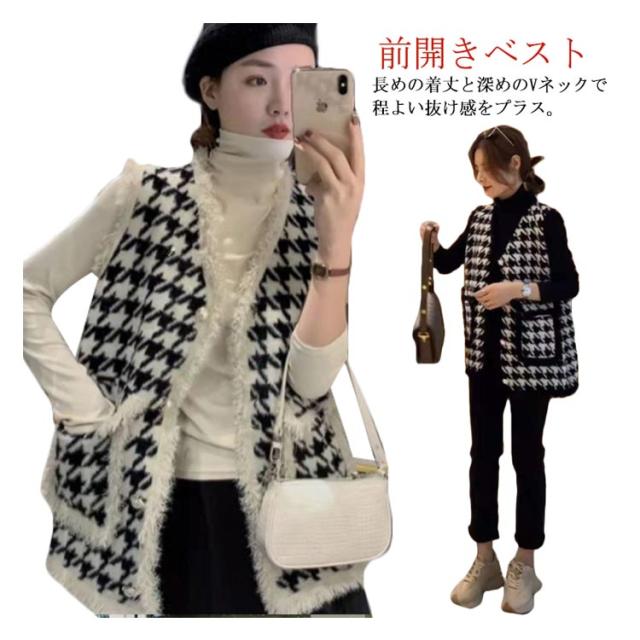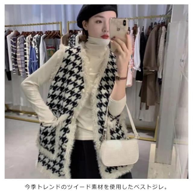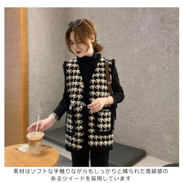 ベスト レディース ツイード ジレ ツイードベスト 前開きベスト Vネック ノースリーブ ジャケット フリンジ ミドル丈 羽織 羽織り レイヤード 重ね着 アウター 春 秋 冬 かわいい おしゃれ 上品 エレガント オフィス カジュアル 入学式 卒業式 入園式 卒園式 春秋 送料無料