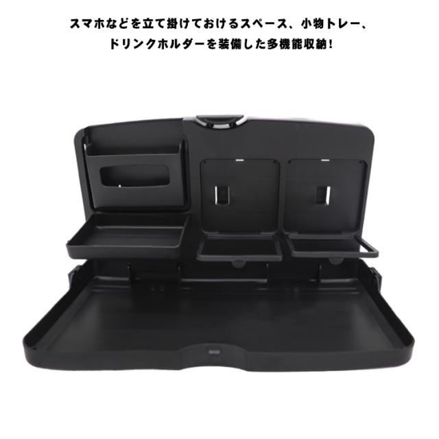 車載後部座席テーブル 車載 後部座席シートバック テーブル 折り畳み式 ドリンクホルダー付 カップトレイホルダー 多機能 車内 食事 内装 ブラック