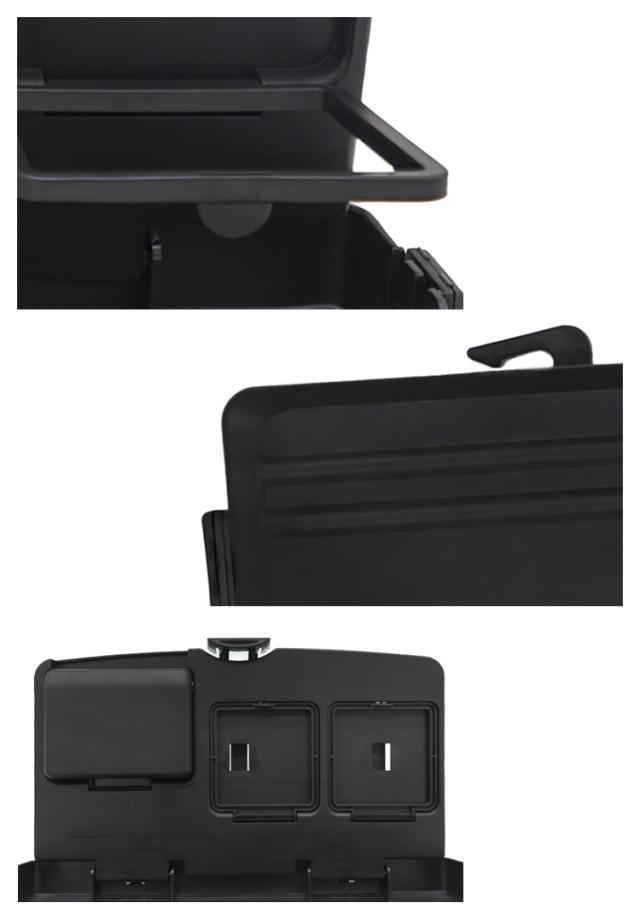 | 車内での食事やタブレット作業に便利な、車載後部座席テーブル。 付属のベルトを使って、座席のヘッドレストに取り付けるだけの簡単装着! スマホなどを立て掛けておけるスペース、小物トレー、ドリンクホルダーを装備した多機能収納!車内での移動時間がとっても快適に♪ 使わない時は折りたたんでコンパクトに収納が可能。 | |