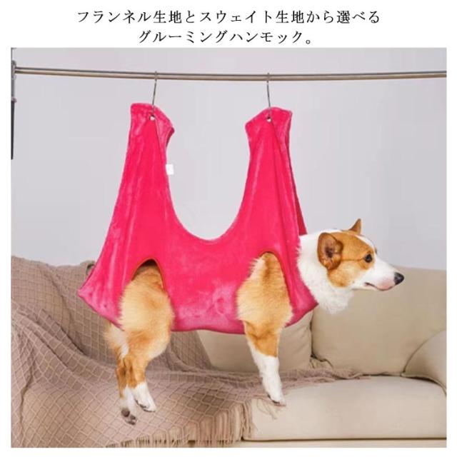 | フランネル生地とスウェイト生地から選べるグルーミングハンモック。 柔らかくてペットを落ち着かせてリラックスさせます。 嫌がって暴れるペットの自宅ケアに! 設置は簡単!付属のS字フックをハンモックの穴に通して吊るすだけ! 洗濯機洗いも可能なので、いつでも清潔に保つことができます。 | |