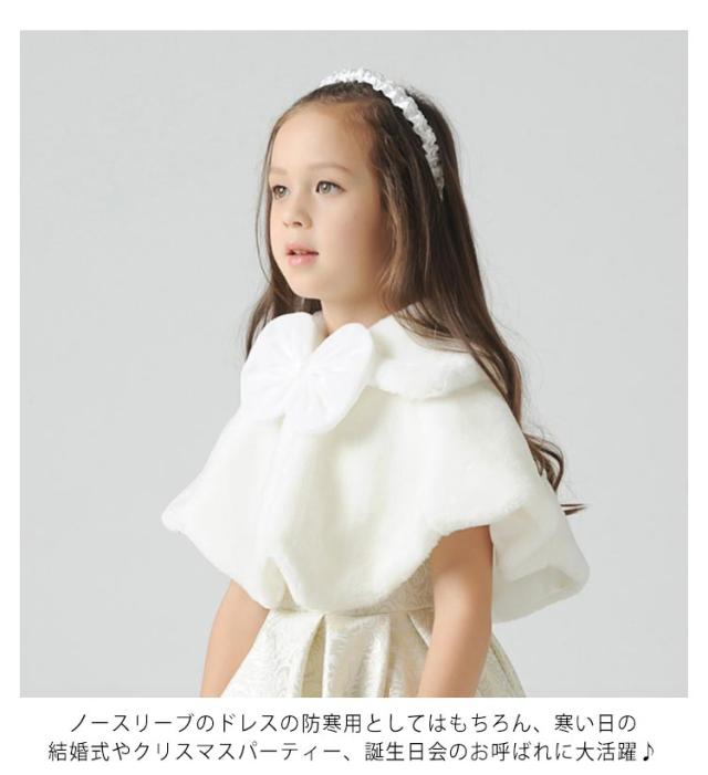 【送料無料】キッズ ボレロ 女の子 もこもこ 子供 フォーマルショール 秋冬 白 ドレスショール ケープ フェイクファー 子供用 お呼ばれ 子供服 キッズフォーマル お出かけ あったか 羽織物 カーディガン リボン 発表会 ピアノ 入学式 結婚式 プリンセス ギフト